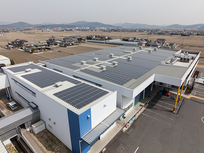 邑久第1、2、4工場、管理棟の屋根に太陽光パネルを施工した。その施工枚数は工場と管理等合わせて2,720枚あり、約600kWを発電している。