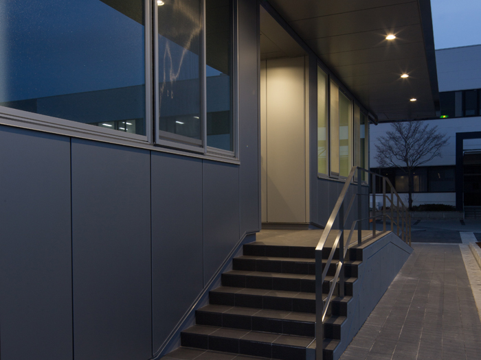 医療・福祉介護機器メーカーの自社製品開発から試作し、工場の総合管理する施設です。外壁には、断熱性能に優れたサンドイッチパネル t=50(外部側 t=8㎜)を採用し、屋根部分には、耐久性を重視したカラーガルバリウム鋼板 t=0.8㎜上フッ素塗装を施工している。 光熱費を削減でき、買電できる太陽光受電設備を設けた。