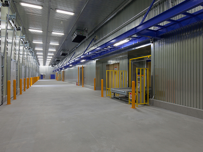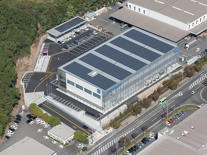 事務所エリアと超冷凍・冷媒倉庫エリアに分かれていて、事務所エリアにはカーテンウォールのエントランスを通り、ELVにて事務所へ至る動線計画とし、各テナントへは南側よりメッキ製の階段を上がって行くという明確な動線となっている。 道路側へは、80Mの目隠しルーバーを設置して、一見しただけでは倉庫とは思えない外観となっている。 1F冷蔵倉庫内部の仕上は、床・壁・天井を断熱ウレタン吹付下地の上、キーストンパネルとし、2Fは断熱パネルで仕上げた。機能的を重視でシンプルな意匠を施した。屋上には太陽光パネルを設置し、冷媒はノンフロンとすることにより、フロン系冷媒に比べ、約20%の省エネとなり早島低温物流センターは、地球環境に優しい建物である。